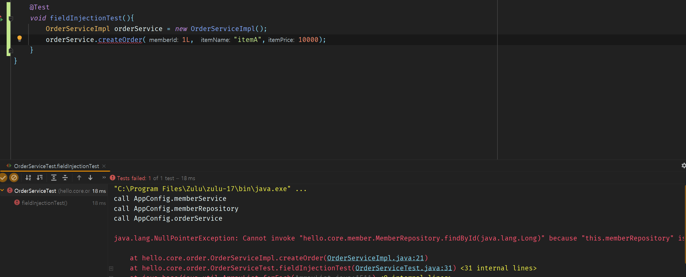 예) @Autowired private MemberRepository memberRepository