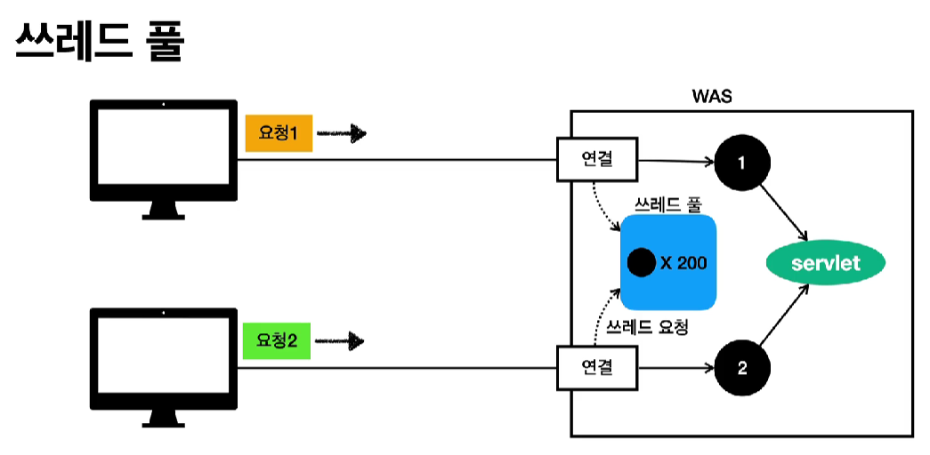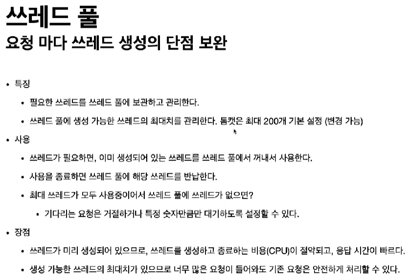 이를 보완하기 위해 WAS는 쓰레드 풀을 보통 사용한다.