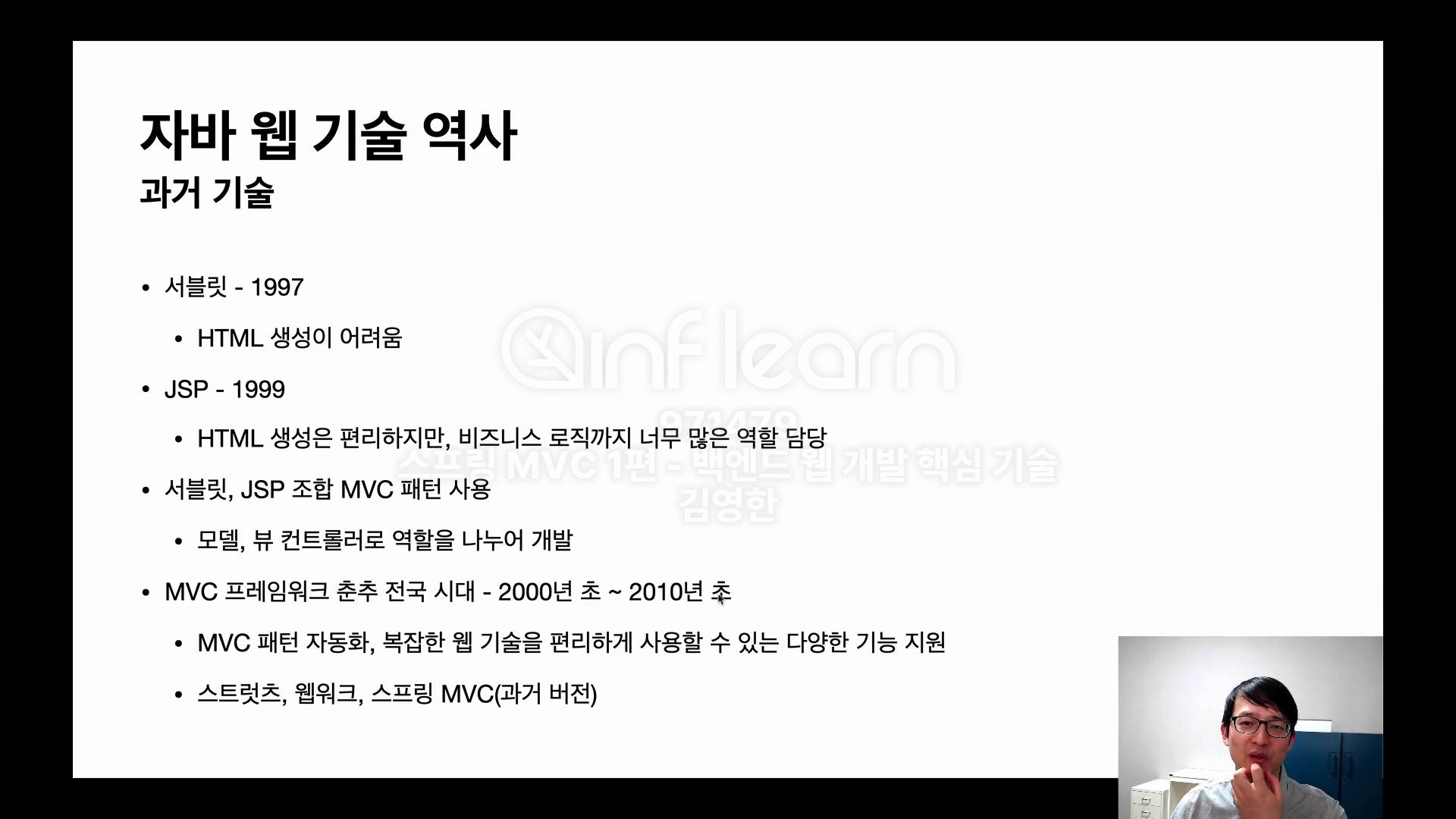 JSP는 HTML 코드에 자바의 코드를 넣어 동적 HTML을 만들기가 편했다. 하지만, 자바의 코드를 사용해 데이터를 처리하고, HTML에 보여주는 역할과, HTML을 그리는 렌더링 역할까지 전부 하나의 파일안에서 수행해야 했기 떄문에, 굉장히 코드 가독성이 떨어지고, 유지보수면에서 불리했다.