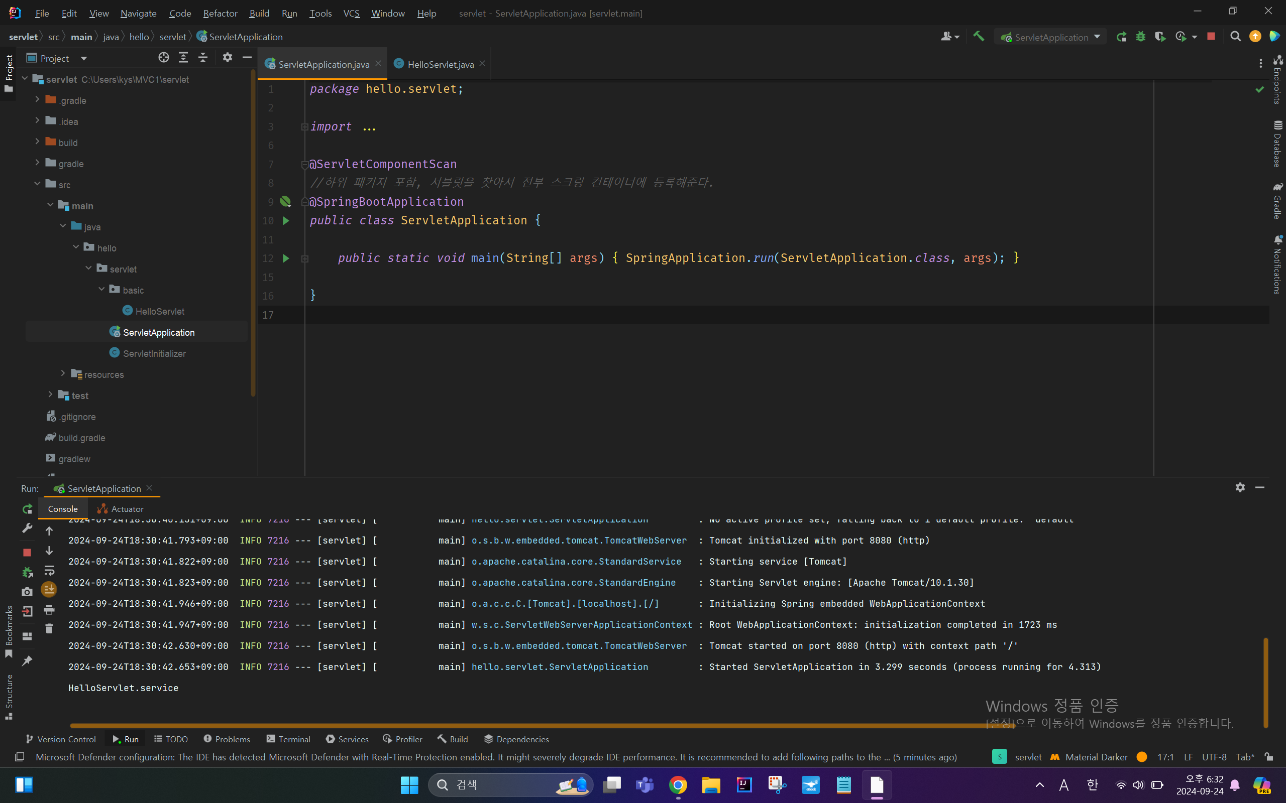 ServletApplication.java에 @ServletComponentScan 어노테이션을 작성한다.