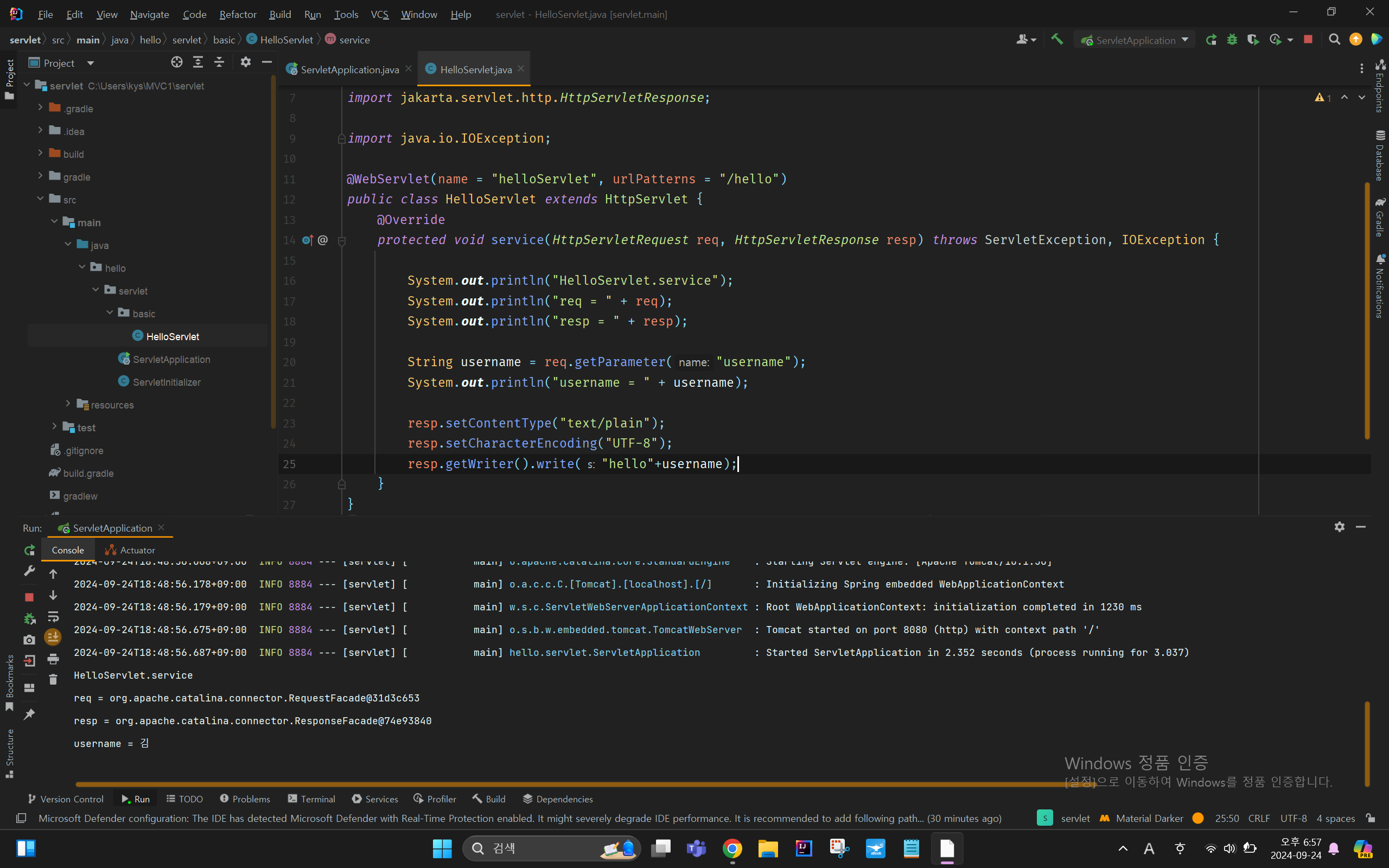편하게 해도 되지만 하위 basic 패키지를 만들고, HelloServlet.java 파일을 만들었다.