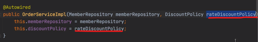 이때 주의할 점은 하위타입으로 지정하는 것인데 이렇게 하면 DIP를 위배하고 유연성이 떨어진다. 그리고 이름은 다르지만 같은 타입의 스프링 빈이 2개 있을 때 해결이 안된다.