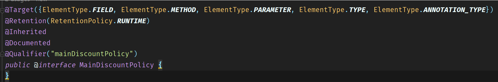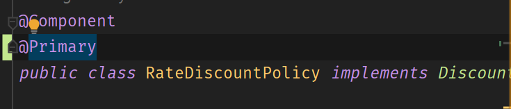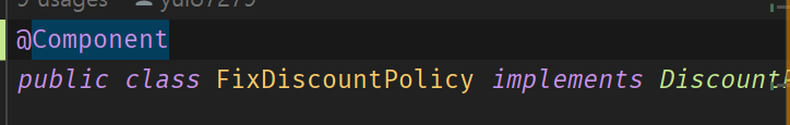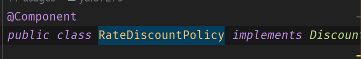 DiscountPolicy 인터페이스에 2개의(Fix, Rate) 구현체에 @Component 어노테이션을 달았다.