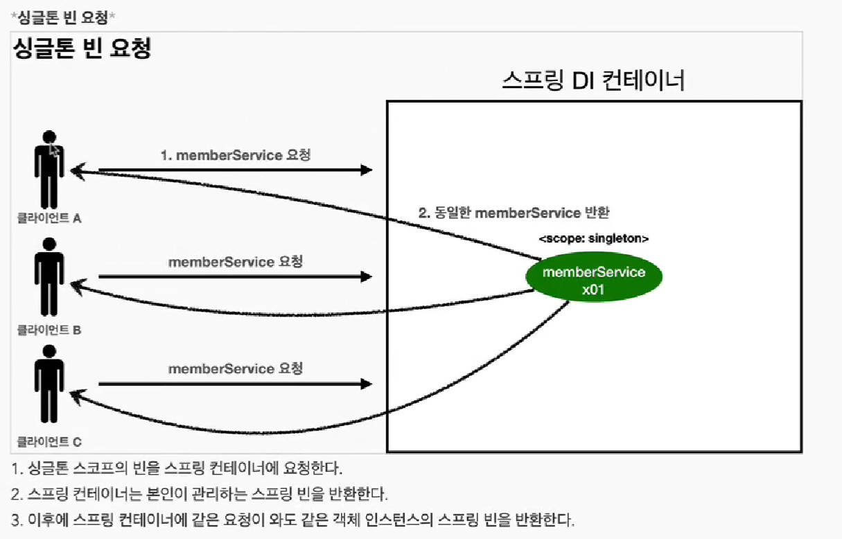 우리는 지금까지 싱글톤 스코프를 사용했다