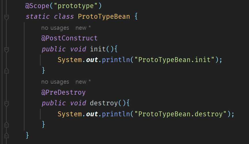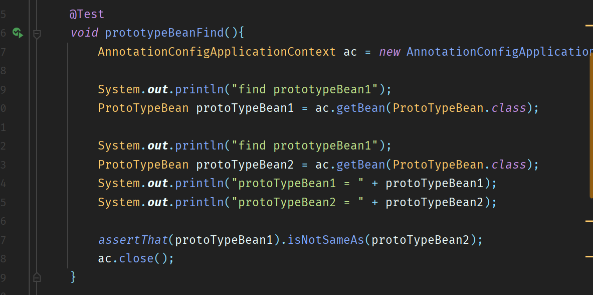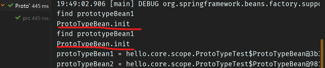 ac.getBean(ProtoType.class);를 호출했을 때 init함수가 호출되는 것을 확인 할 수 있다.
