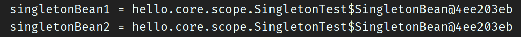 테스트 결과 싱글톤 1, 2는 모두 같은 객체를 의미한다.