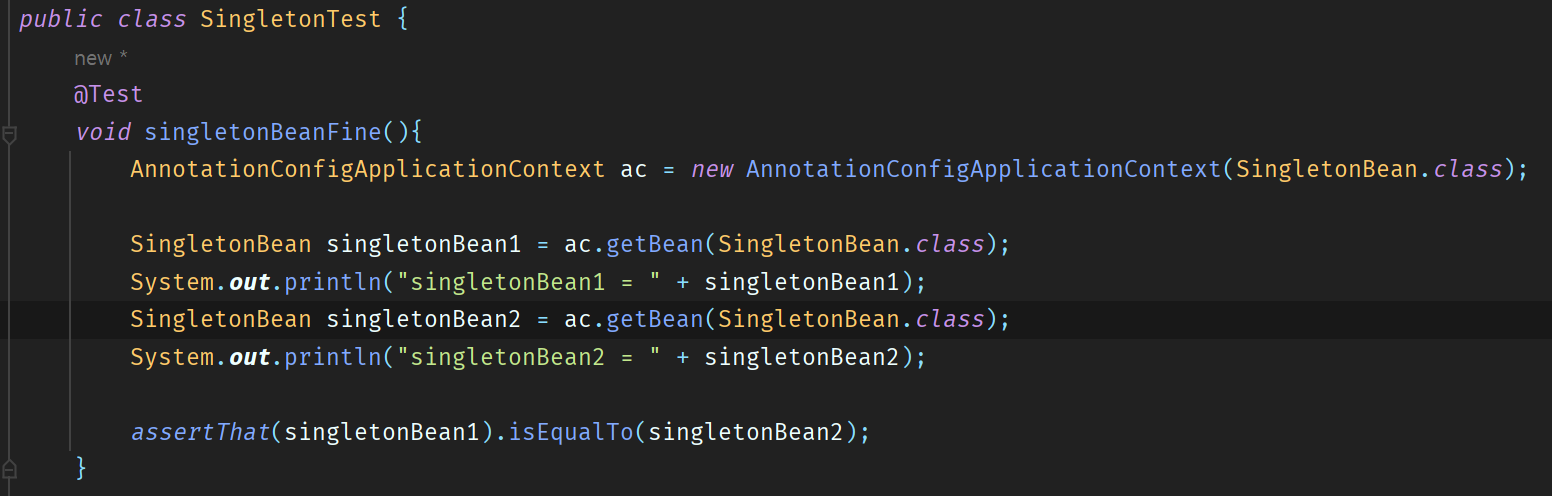 위의 테스트코드와 비교해서 싱글톤과의 차이를 확인 해 본다.