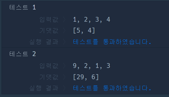 두개의 예시 테스트를 통과하고 풀었구나... 생각했지만 최종테스트결과는 실패였다.