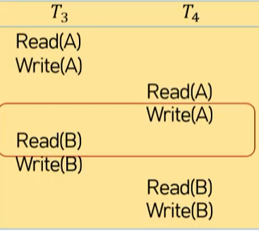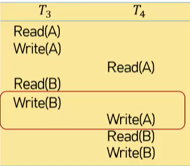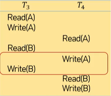- 사용된 READ와 WRITE연산 교환 시 상황에 따라 실행 결과에 일관성이 훼손되는 현상(충돌)이 발생