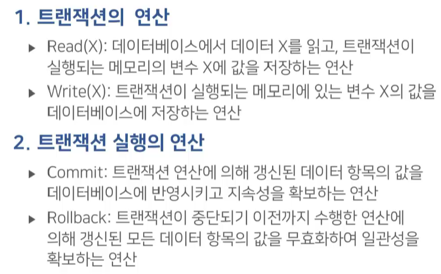 - 데이터베이스를 조작하기 위한 하나의 논리적 단위를 이루는 일련의 연산의 집합