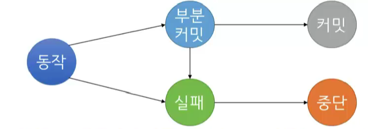 - 중단 : 실행 실패로 롤백되고 시작 이전의 상태로 환원된 상태