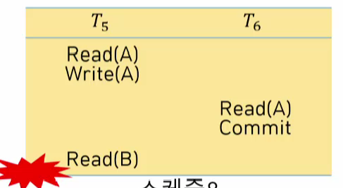 - Ti가 기록한 데이터를 읽을 때 Ti의 커밋이 Tj의 읽기 연산보다 먼저 나타나는 스케줄