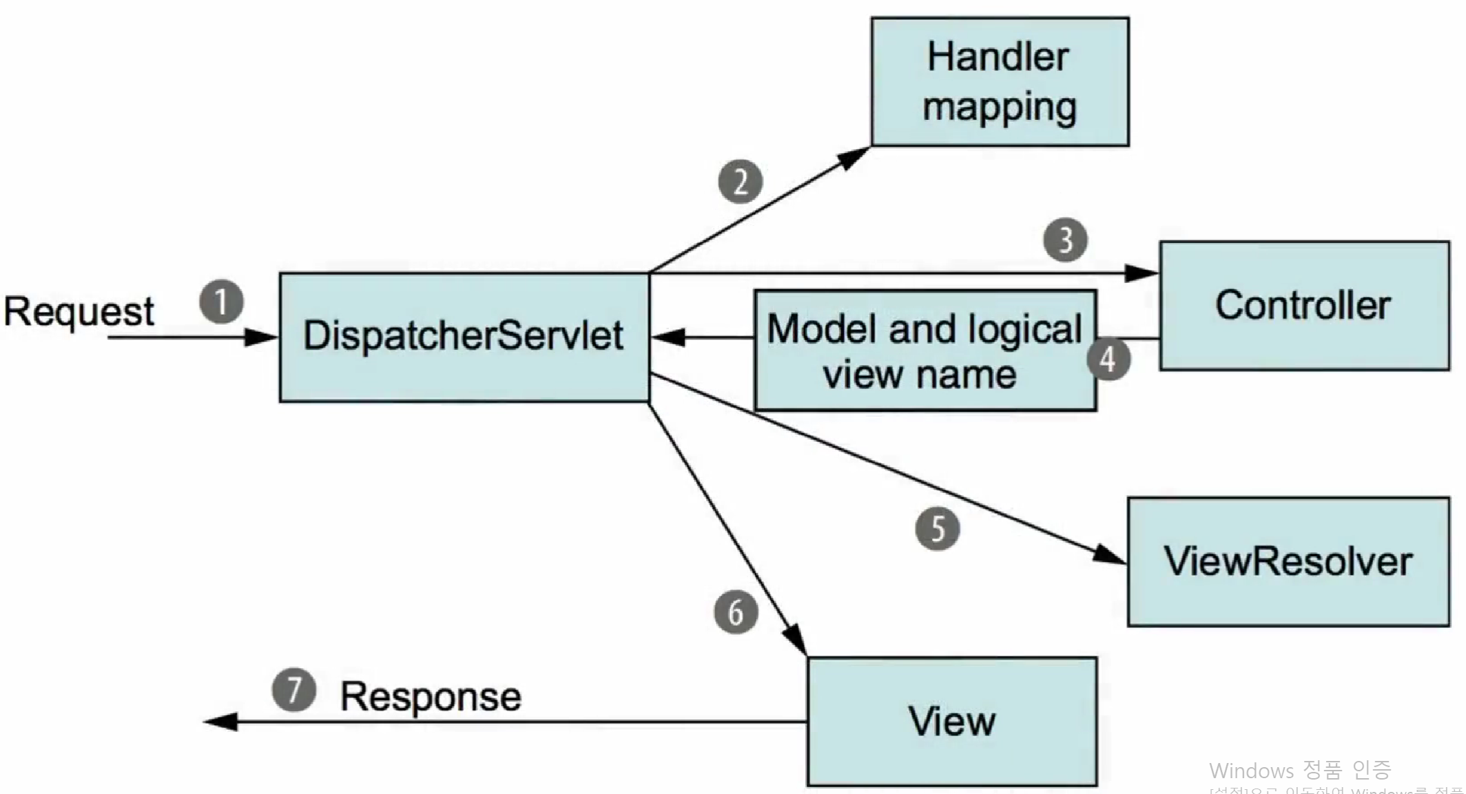 2. DispatcherServlet이 요청을 분석하여 Handler mapping을 통해서 Controller 요청을 전달 해준다.