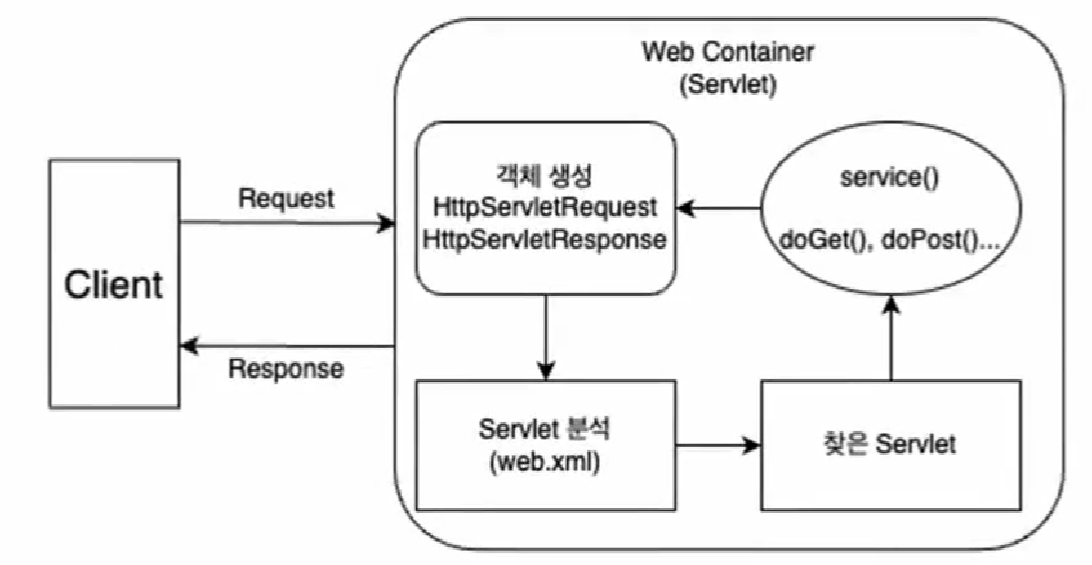 그 결과를 우리가 반환을 하거나, 동적페이지를 생성을 한 다음 HTTPServletResponse객체에 응답을 담아 클라이언트에 반환을 하게 된다.