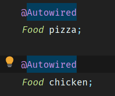 주입받는 해당 객체의 이름 단순히 food로 두지 않고 을 직접 입력(pizza, chicken)하여 구분한다.