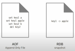 RDB : 스냅샷 방식으로 동작, 저장 당시 메모리에 있는 데이터 그대로를 사진찍듯 그대로 저장해 파일로 남긴다.