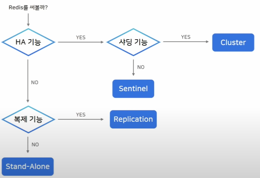 - 센티널 프로세스를 추가로 띄어야 하는데 센티널 노드는 항상 3대 이상의 홀수로 존재해야 함
